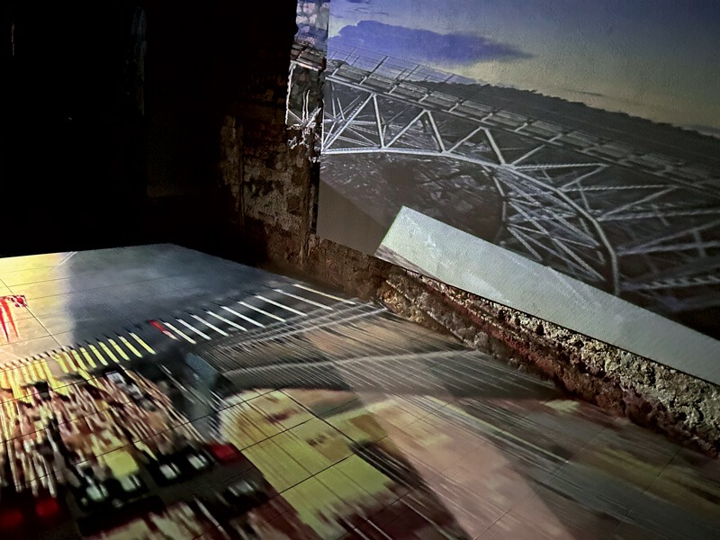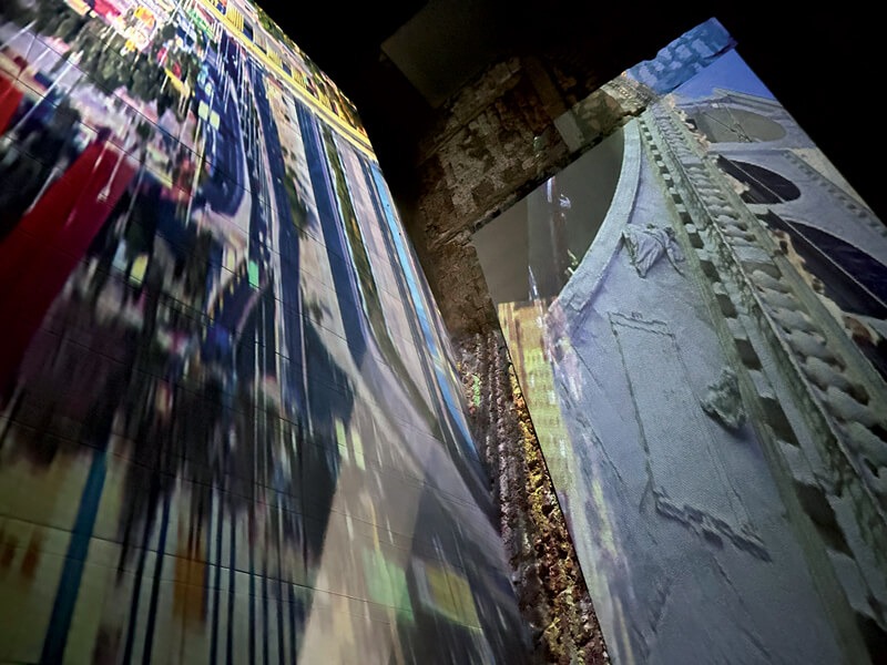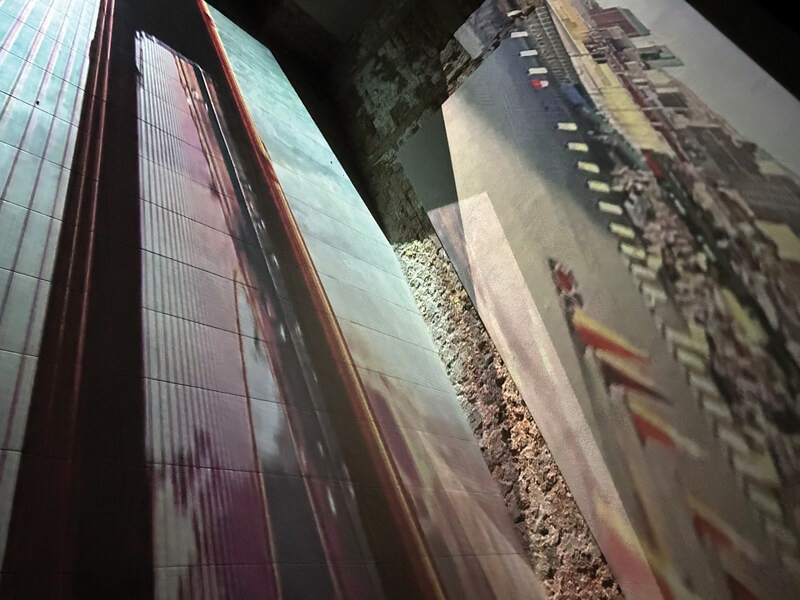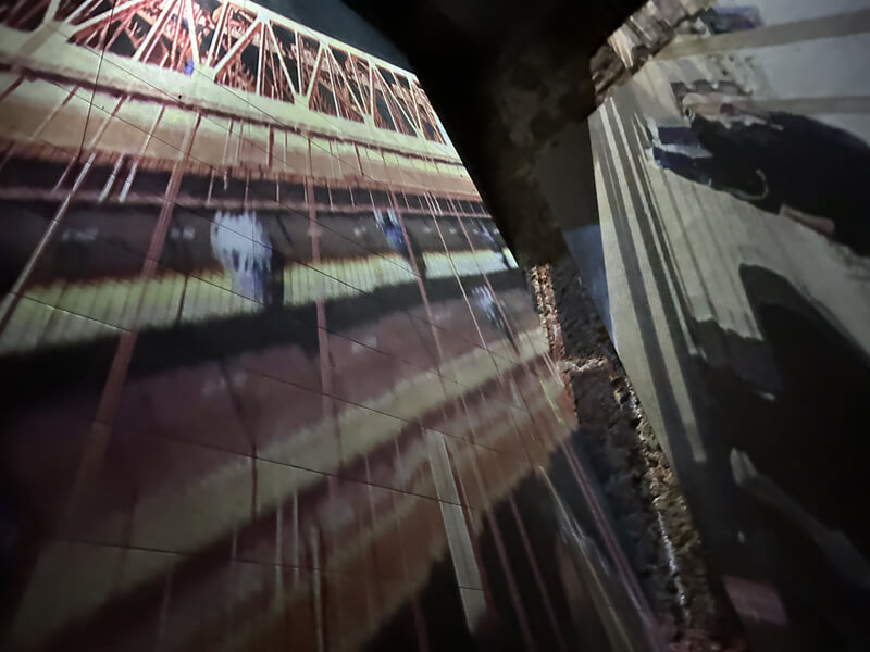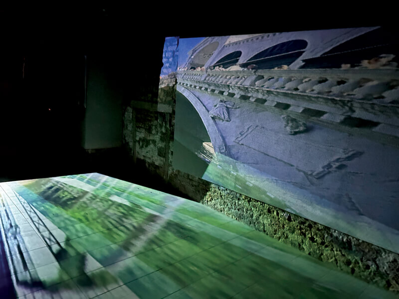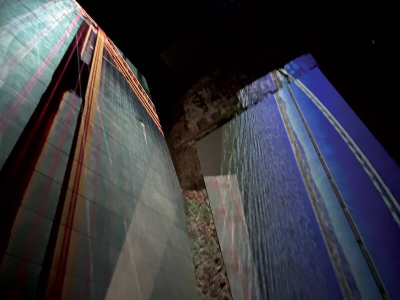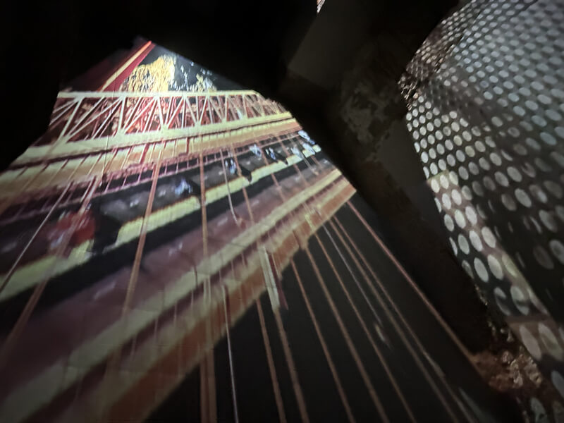 Bridges Edges è un’installazione video interattiva, a tiratura limitata, di un giorno, che incorpora immagini delle città natali negli Stati Uniti di de Anda e Ahn, in prossimità di specchi d’acqua collegati da ponti. Gli attraversamenti di de Anda sono lungo il Messico dal Texas attraverso il fiume Rio Grande e il Rio Bravo, quelli di Ahn dal Golden Gate Bridge vicino a San Francisco su uno stretto che collega San Francisco all’Oceano Pacifico; così come il percorso di vari ponti negli Stati Uniti. Le immagini video di questi ponti si fondono con le riprese in time-lapse dei pedoni che attraversano e abitano i ponti di Venezia e vengono proiettate lungo il corridoio/passaggio della galleria artespaziotempo.