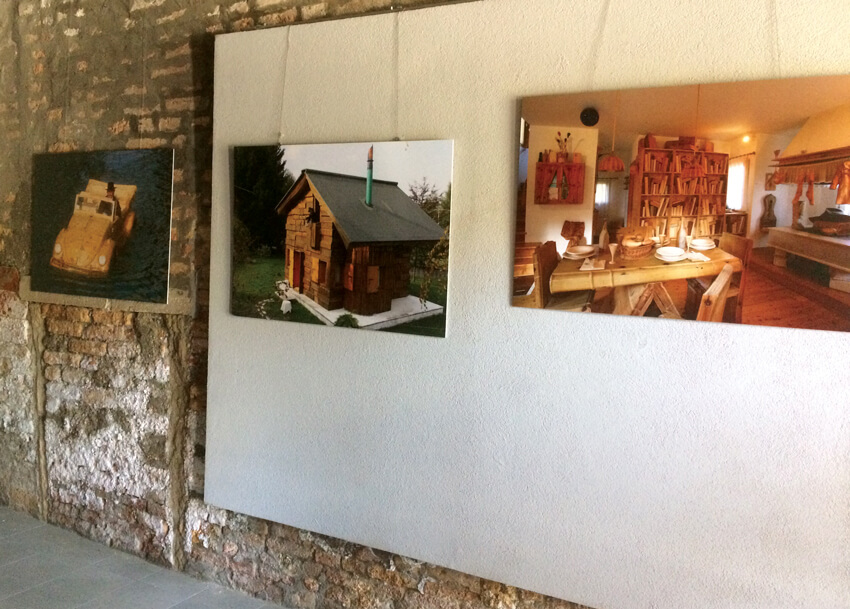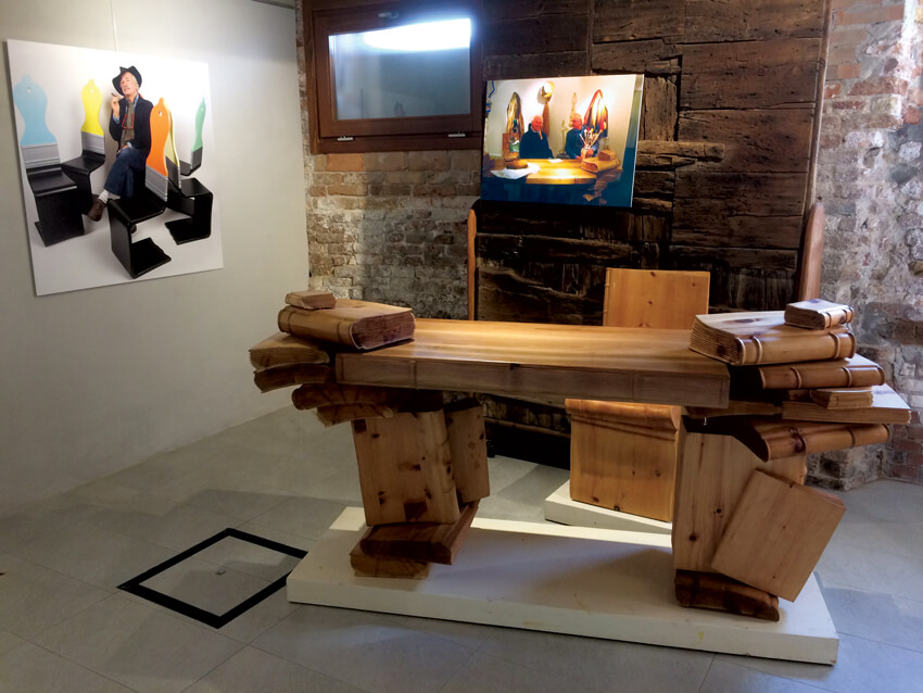 Case, libri, auto, gondolfiere, palloncini, valigie, orsetti, scrivanie, tutto nasce dal concetto sacro della vita per cui prerogativa primaria delle sue opere è che “devono sembrare vere”. Ed è proprio da qui che arriva la componente ludica: cercare invano di aprire un portafogli di legno, rischiare una pioggia di frammenti per aver tirato un palloncino che sembrava ad elio ma in realtà è di vetro.