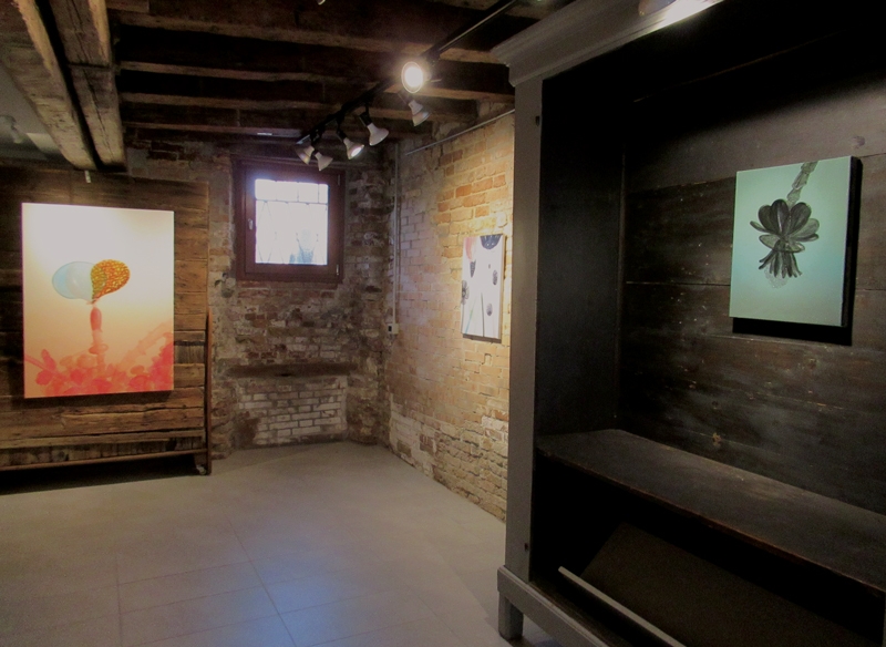 Passeggiando all’interno dei palazzi veneziani quali fossero giardini incantati, Sforni ha raccolto svariate specie di fiori molti dei quali sbocciati fra i rami dei lampadari settecenteschi, alcuni dischiusisi sulle applique che si arrampicano sulle pareti degli antichi saloni, altri semplicemente appoggiati a coppe e vasi di vetro soffiato.