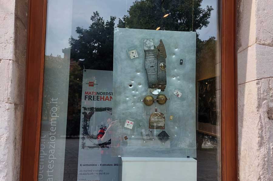 Con queste premesse l’oggetto artistico diviene cosi la rappresentazione di una capacità di fissare e portare a rappresentazione una relazione complessa tra lo spazio e il tempo che si osserva sopratutto vedendo le “opere scultoree” di Mats esse sono objet trouve opere di un tempo passato, esse stesse sostegno, sostrato evocativo, di usi lontani. Rappresentazioni, Tags, appunto. La ricerca di forme alternative, ad un formalismo plastico, si allontana allora vertiginosamente dall’uso di tecniche consuete, pietra, creta o artifici pittorici, ormai desueti, su cui ospitare l’immagine ma è l’oggetto stesso che la contiene essendone contenuta, qualcosa di simile ad una visione che emana un profumo: quale dei due sensi raggiunge lo scopo per primo? Entrambi sono percepiti ma è come se uno fosse un profumo e l’altro un profilo, l’immaginario odoroso colpisce dei sensi profondamente radicati nel nostro subconscio per poi essere spiegato, chiarito, dal più razionale senso della vista.