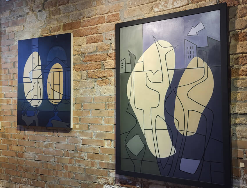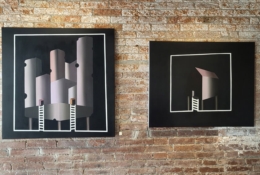 I palcoscenici entro i quali si muovono ed esistono i polimorfici attori di questa lunga narrazione, ciascuno allegoria di un progetto di sviluppo fallimentare e privato di ogni forma logica del pensiero, appaiono come non-luoghi che esiliano l’individuo entro gabbie metropolitane – ambienti urbani determinati da barriere di cemento e segnati da illuminanti campiture accese che individuano un centro equilibratore altrimenti assente negli sfondi monocromi o bicromi – metafore di clausure e di trame narrative prive di spinte evolutive, rallentate fino a una fissità eterna e atemporale nella quale questi personaggi sembrano costretti a vivere e a ripetere illogici copioni. […]”