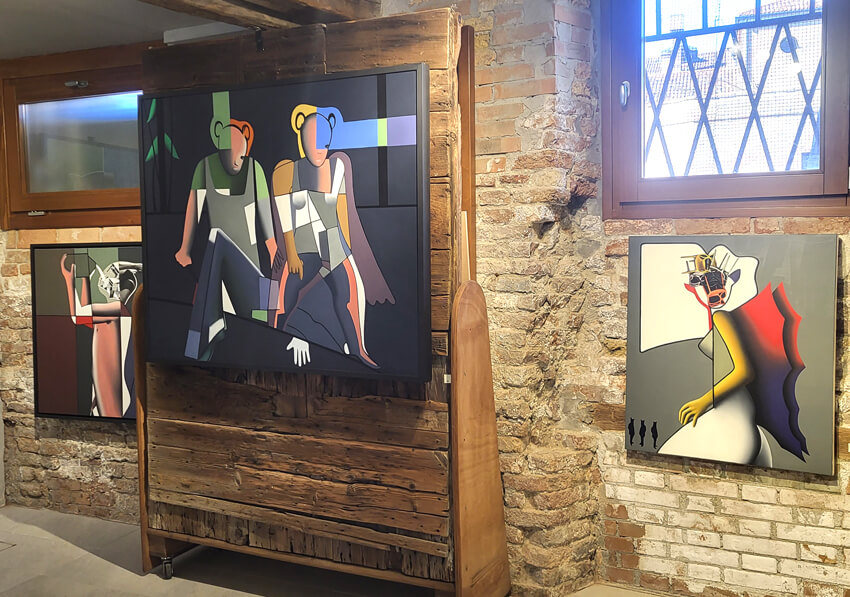 Il nuovo ciclo di lavori, seguendo un percorso di analisi proprio della lunga ricerca condotta dall’artista mestrino (nato a Venezia Mestre nel 1961), prende in esame la società moderna sia sotto il profilo esistenziale sia sotto il profilo relazionale; una lucida analisi della contemporaneità e delle incongruenze che regolano i rapporti umani negli sconfinati palcoscenici delle esistenze.