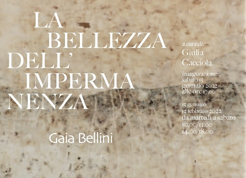 Sabato 15 gennaio 2022 alle ore 17.00, presso la galleria Arte Spazio Tempo di Venezia, si terrà l’apertura della mostra “La bellezza dell’impermanenza” dell’artista Gaia Bellini a cura di Giulia Cacciola e organizzata dall’associazione ATTIVA Cultural Projects.