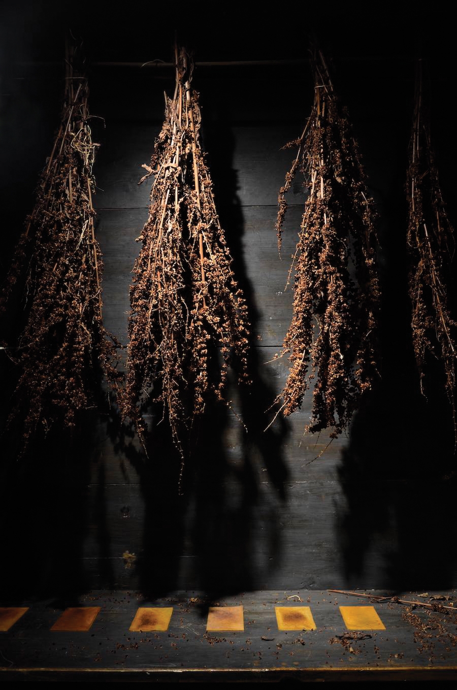 L’utilizzo di semi e bacche che vengono avvolti nelle tele per creare stampe botaniche, il tessuto assorbe il colore contenuto all’interno degli elementi vegetali, si tinge, ed ecco che il colore diventa intrinseco alla tela e non sovrapposto, è parte integrante e indivisibile.